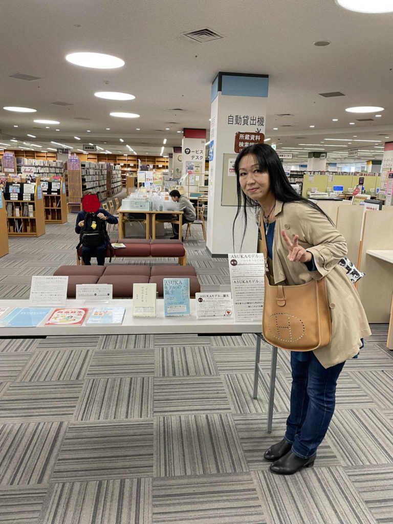 写真は明日香さんのお母様で本書の編著者でもある桐田寿子様とさいたま市立中央図書館での展示です。同図書館でのさいたまPUSH講習会では、メッセンジャーを務めていただいています。