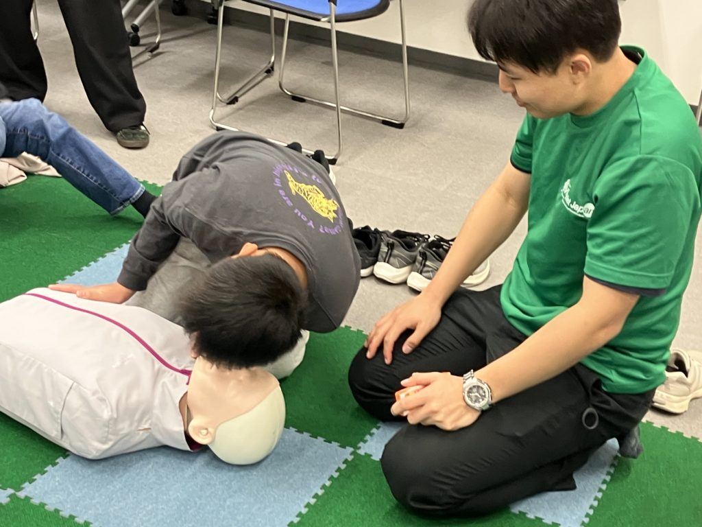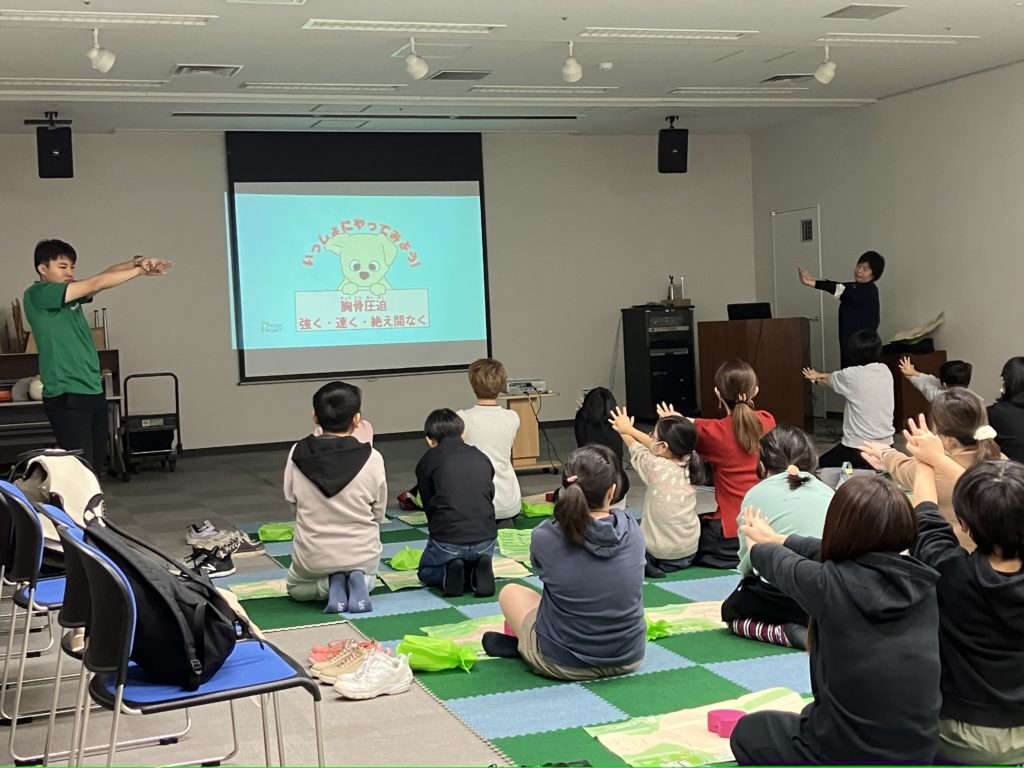 そしてPUSHコースの後の救命体験コーナーは、相変わらず大人気です。直前にPUSHで流れを理解しているからこそ、マネキンでの体験がよりリアルに感じられるのでしょう。